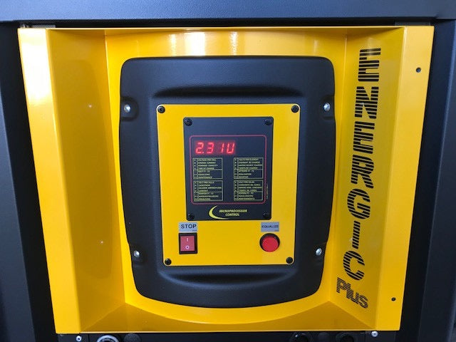 • Single phase input • USA input voltage: 200-208-220-240-250 • Meets UL and CSA standards • Fully automatic • Equalization system • Digital display: volt/cell, current, capacity charged, time of charge, error messages • 3-second delay on start to avoid sparks • Automatic start, battery shutdown on battery disconnection • Easy adjustment of input voltage, with transformer taps