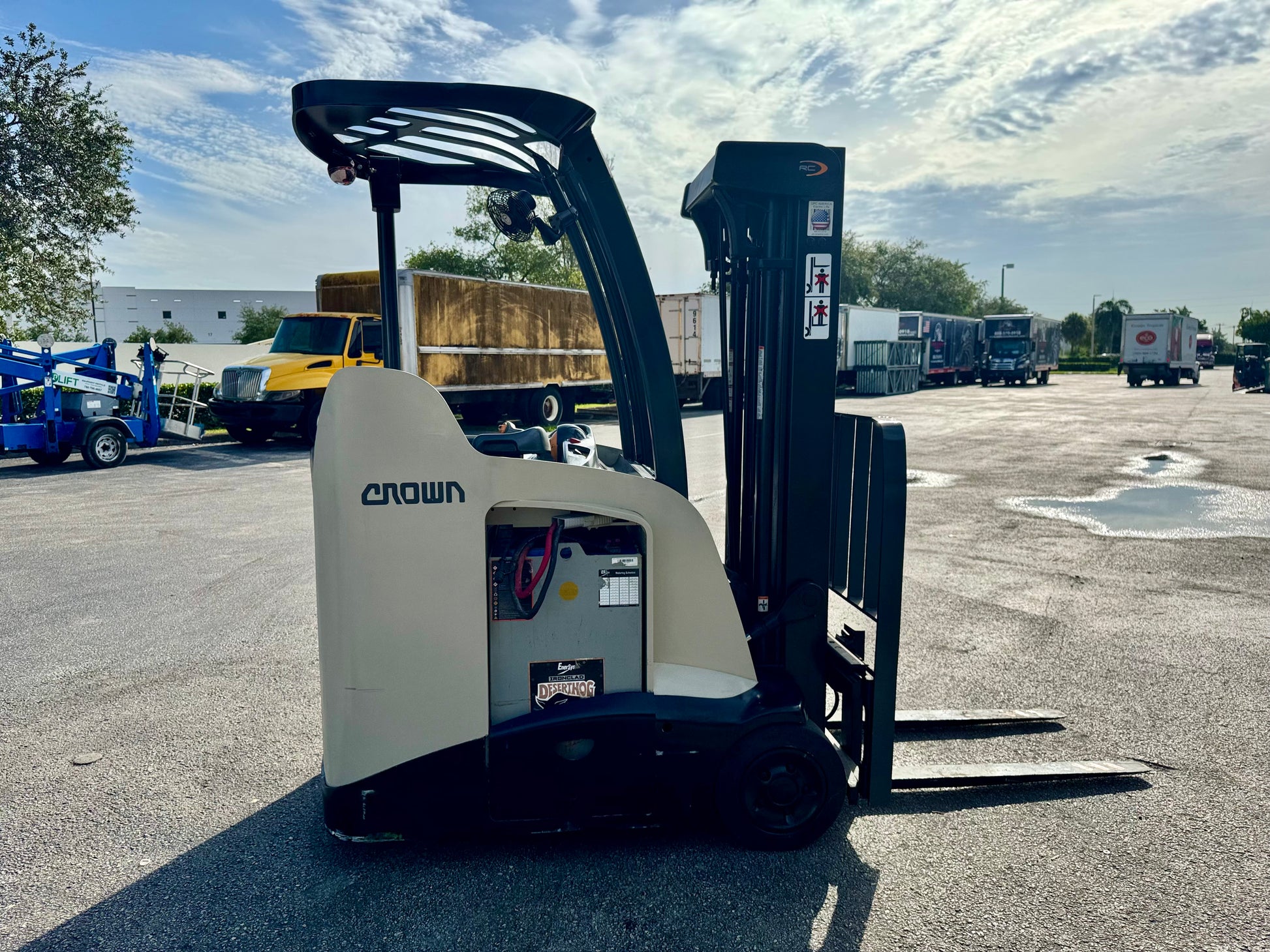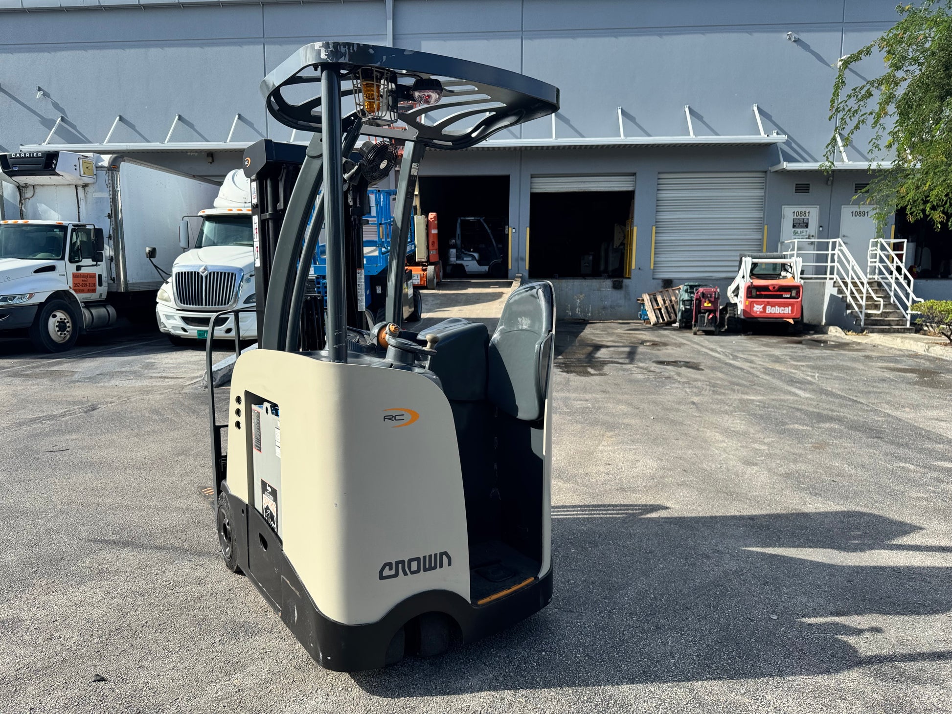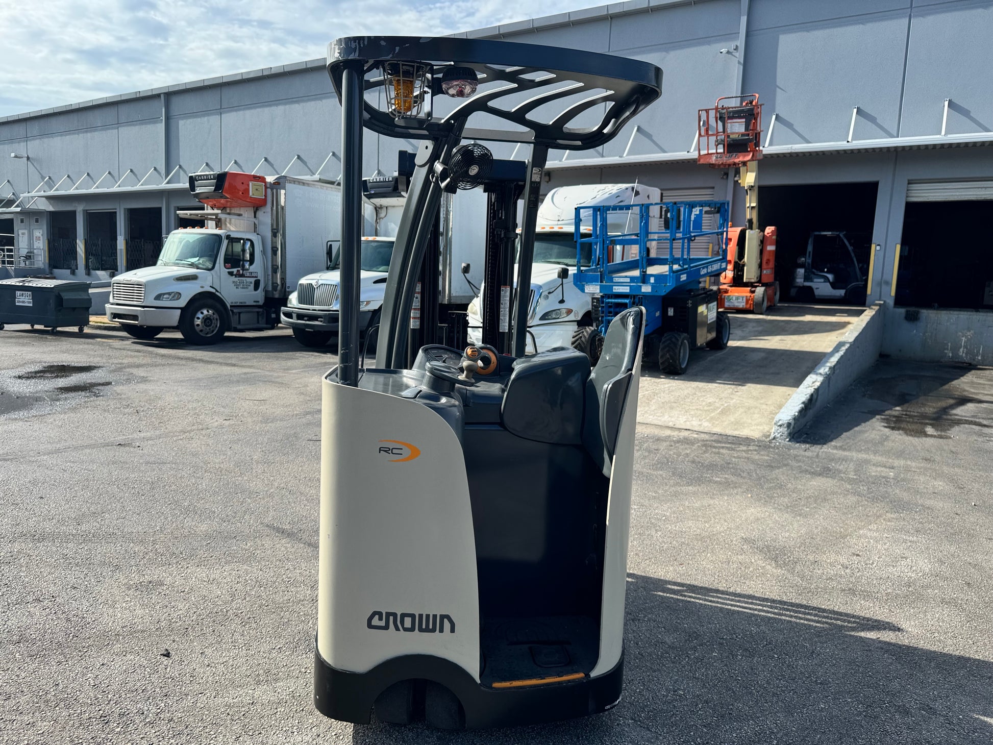 Forklift For Sale Electric Forklift 2014 Crown RC5500 Narrow Aisle 2021 Tested Battery Height Stock # 9174