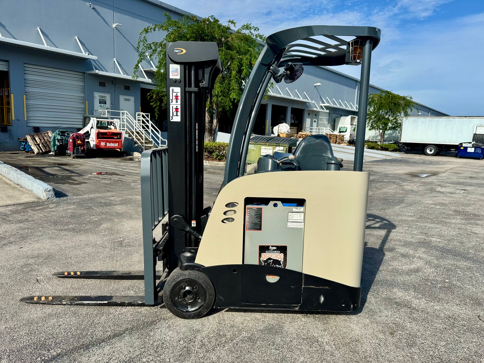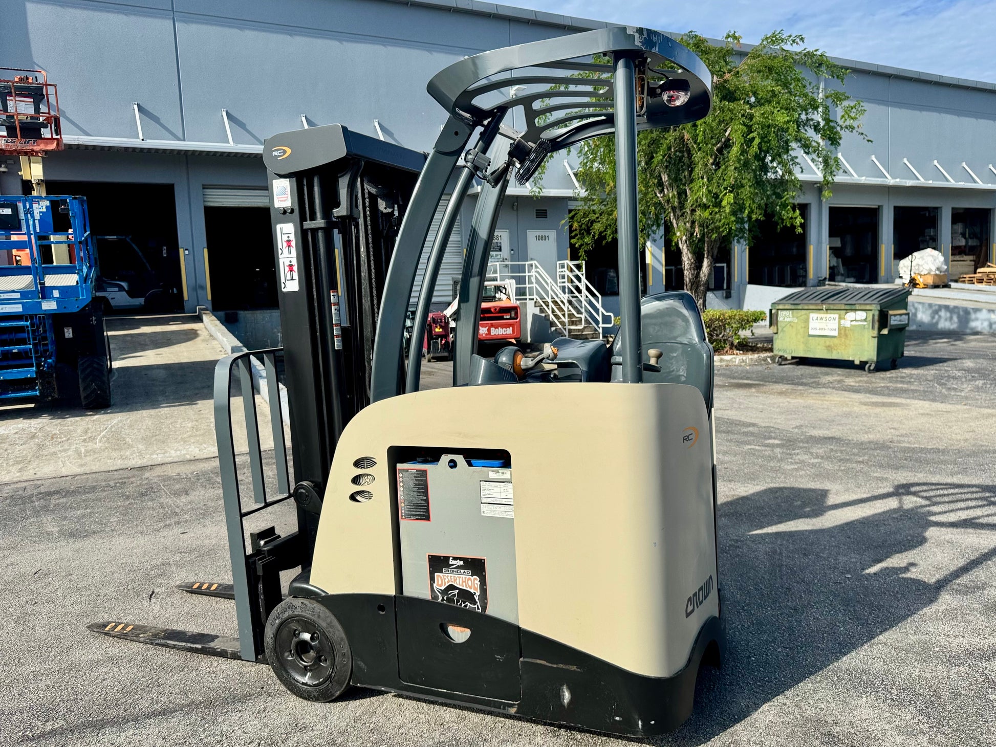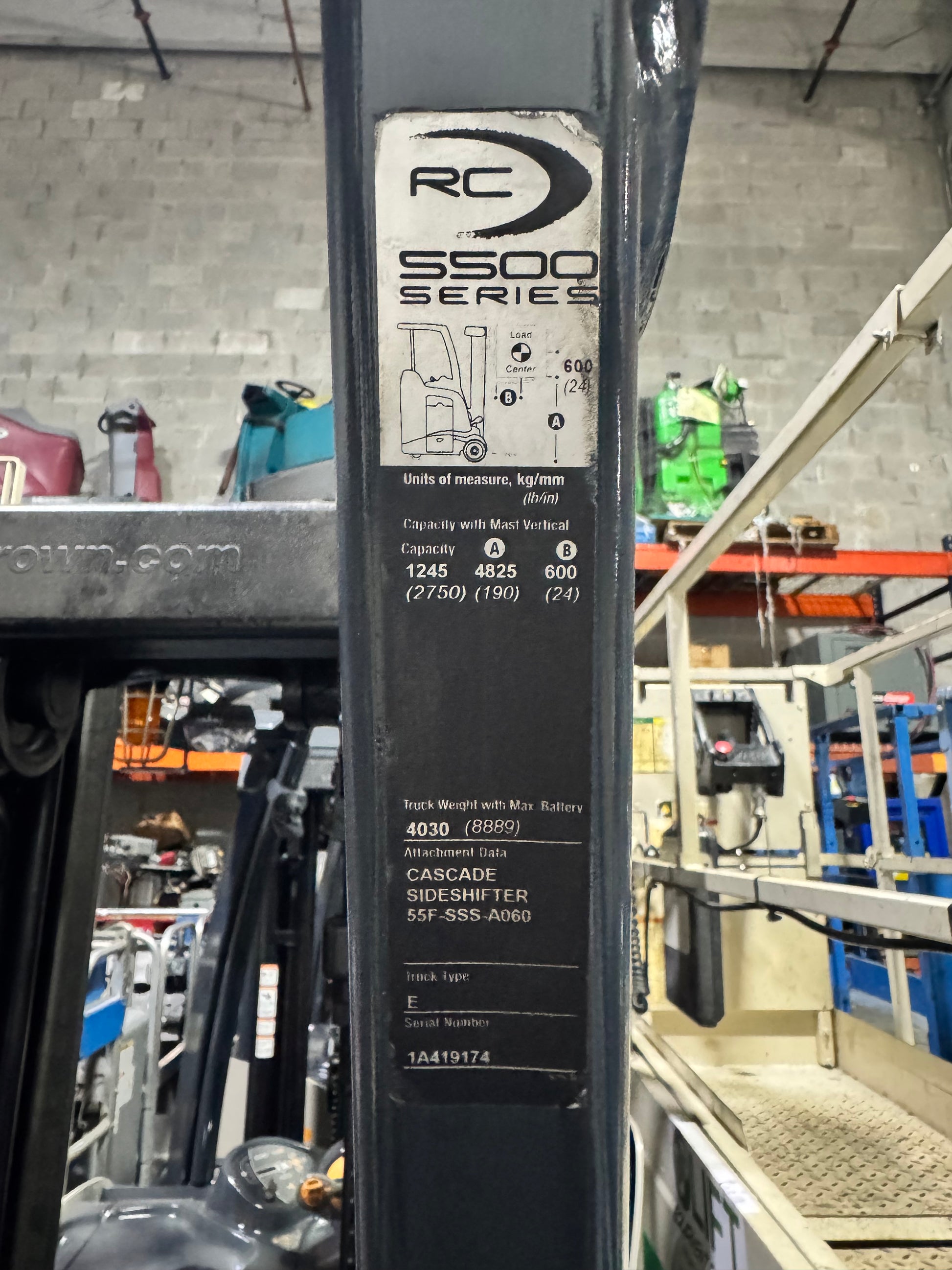 Forklift For Sale Electric Forklift 2014 Crown RC5500 Narrow Aisle 2021 Tested Battery Height Stock # 9174